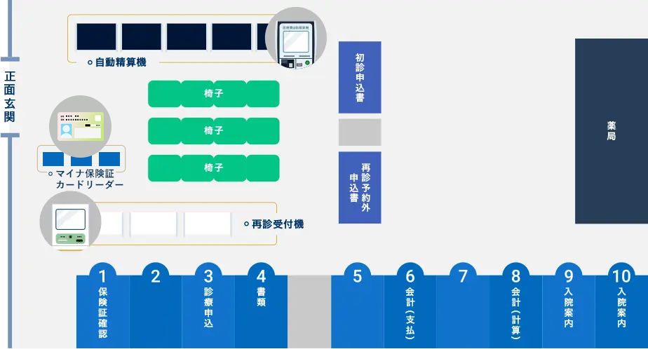 ※マイナンバーカードをお持ちでない方は資格確認書を総合受付1番窓口へご提示ください。