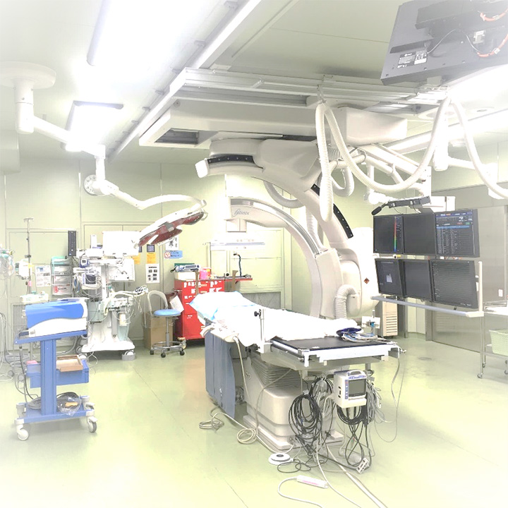 当院では2016年よりカテーテル治療と心臓血管外科手術を同時に施行できるハイブリッドカテーテル室を稼働させています。ハイブリッドカテーテル室では主に、大動脈瘤の治療である大動脈ステントグラフト内挿術や、閉塞性動脈硬化症に対するバイパス手術、カテーテルによる血管拡張術/ステント留置術/末梢動脈ステントグラフト内挿術など、カテーテル治療と外科手術が同時に必要な疾患を治療しており、その治療数は年々増加しています。ハイブリッドカテーテル室で行われる多くの治療が、心臓外科医と循環器内科医(カテーテル治療医)が同時に術者となり、互いに協力し、その長所を生かし合いながら治療を行っています。