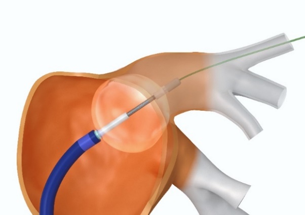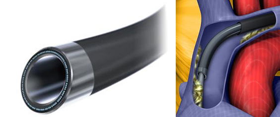 デバイス感染症が発生した場合には、デバイスの本体のみならず、心臓の中に植込んだリードも抜去する必要があります。しかし、長期間心臓や血管内に留置されたリードは癒着のため単純に引っ張るだけでは抜去できず、また無理な牽引により血管損傷を来し致命的となるリスクもあります。そのため今まではリード抜去が困難な場合には、人工心肺の補助下に外科的な開心術により抜去しなければならず、患者さんに大きな負担がかかることが問題でした。