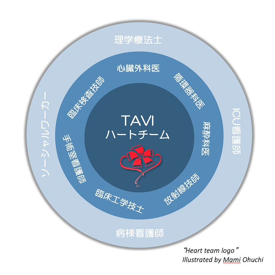 当院でTAVI(TAVR)の治療を担うハートチームは、医師、看護師、臨床工学技士、放射線技師、理学療法士などの多職種で構成され、それぞれが専門的なスキルを持ったプロフェッショナルの集団ですが、各々が分担された責任を全うする強い気持ちでこの治療にのぞみ、そしてセクションの垣根を越え、気さくに現在の問題点を話し合い、改善に改善を重ね続けてきたことが、今回のこの治療成績に繋がったと考えています。