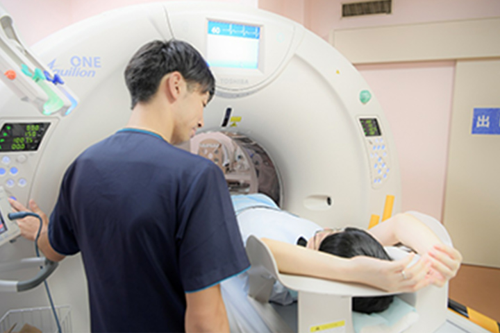患者さんを緊張させてしまうと正確な画像を得られないためスタッフ一同笑顔で患者さんを検査室に迎え入れ、検査にストレスを感じさせないような空間作りに努めています。