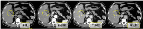 ○で囲まれたところに単純画像ではわかりませんが、造影剤が入ると白く映ります。