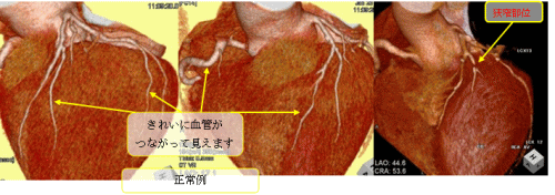 (画像は 左と中央は正常例、右は血管狭窄例)