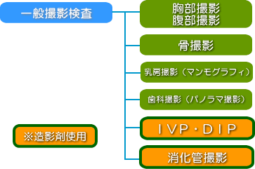 一般撮影検査とは言っても中には特殊なものもあります。当院で行っている一般撮影検査の種類を以下にまとめました。